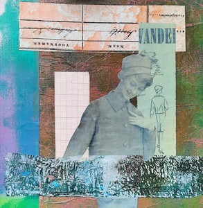 2025collage op mdf 19 x 19 cm